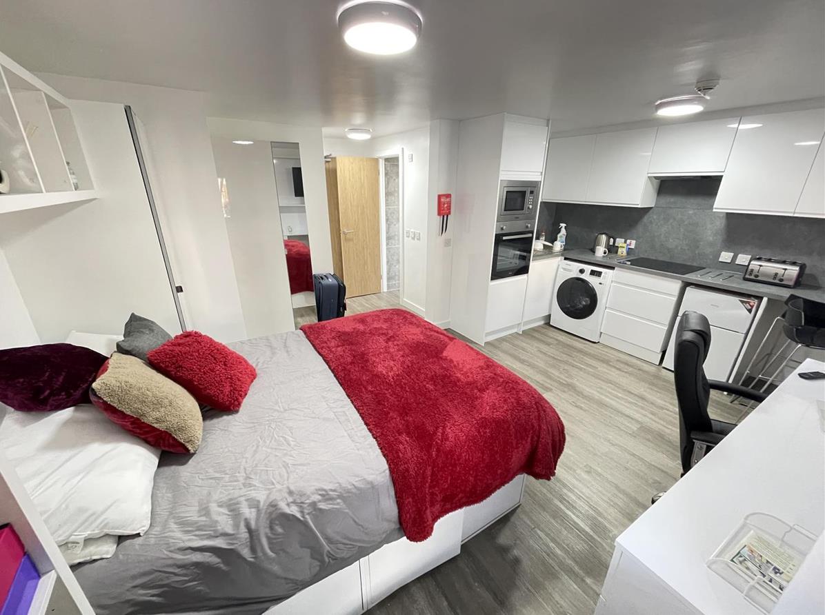 A modern self-contained studio consisting of: A modern fitted snack area, an open plan living/ dining area and a fitted shower room. This spacious accommodation on offer is fully double glazed and fully furnished with student essentials. The studio is located within a secure gated community, with off road parking. It is located very near the university and close to the busy night life of Selly Oak Village is just a short walk away. The cleaning and upkeep of the communal stairs and landings are carried out by us.