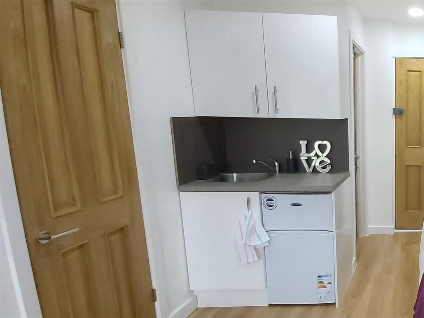 A brand new studio style property consisting of a fitted snack area, an open plan dining/living area and a smart fitted self-contained shower/toilet room. This spacious accommodation is fully double glazed and furnished with student essentials and free 100mb broadband. The cleaning and upkeep of the communal stairs and landing are carried out by us.